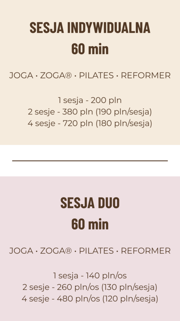• Joga • Pilates na macie • Zoga® • Pilates Reformer •
